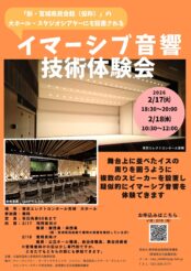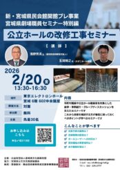 イマーシブ音響技術体験会令和8年2月 17日(火)18:30~20:00(開場18:00) 、 2月18日(水) 10:30~12:00(開場10:00)東京エレクトロンホール宮城 大ホール公益財団法人宮城県文化振興財団 TEL:022-225-2777 民音タンゴ・シリーズ<55> パブロ・バジェ・セステートS席 7,000円 A席 6,500円 ※小学生未満(乳幼児)の入場不可令和8年2月 12日(木)開場13:30 開演14:00東京エレクトロンホール宮城発売中MIN-ON仙台 ☎ 022-355-4772(平日:10:00~17:00) トヨタ・マスター・ プレイヤーズ,ウィーンS席 10,000円 A席 8,000円 B席6,000円 ※当館ではハッピーシートのお取り扱いはございません。 ※未就学児入場不可令和8年4月 6日(月)開場18:15 開演19:00東京エレクトロンホール宮城発売中河北新報社 事業部 ☎022-211-1332 (平日10:00~17:00) 一条工務店 presents 恐竜ラボ!ギガ・ミッション from DINO-A-LIVEダイナミックシート:6,900円、 S席:4,600円、A席:3,800円 ※ダイナミックシート:前方1~5列、当日会場でオリジナル特典をプレゼント令和8年3月 14日(土)①開場10:00 開演10:30、②開場13:00 開演13:30、 3/15(日)①開場10:00 開演10:30、②開場13:00 開演13:30、東京エレクトロンホール宮城発売中ミヤギテレビ 事業部 022-215-7700(平日10:00~18:00)