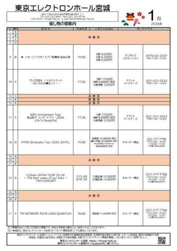 ・ 東京エレクトロンホール宮城の公式X, Facebookも御覧ください。